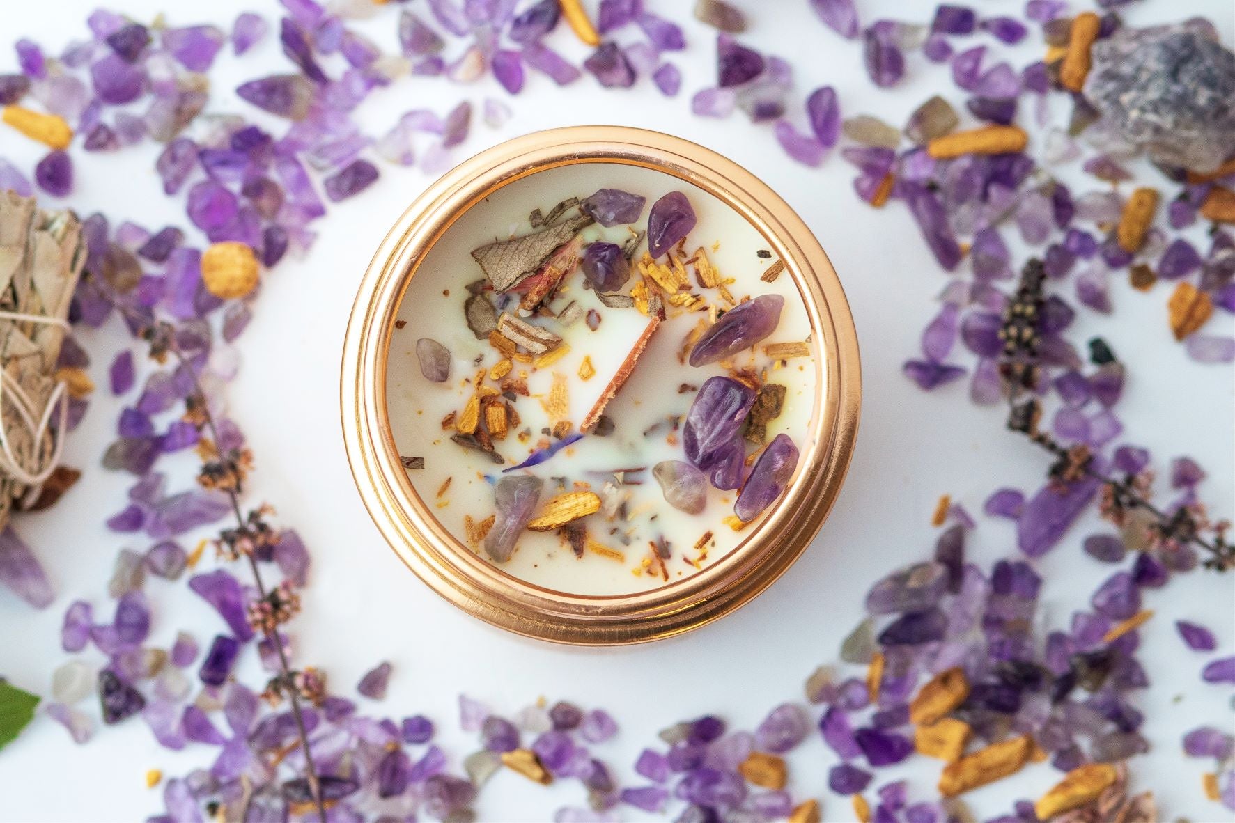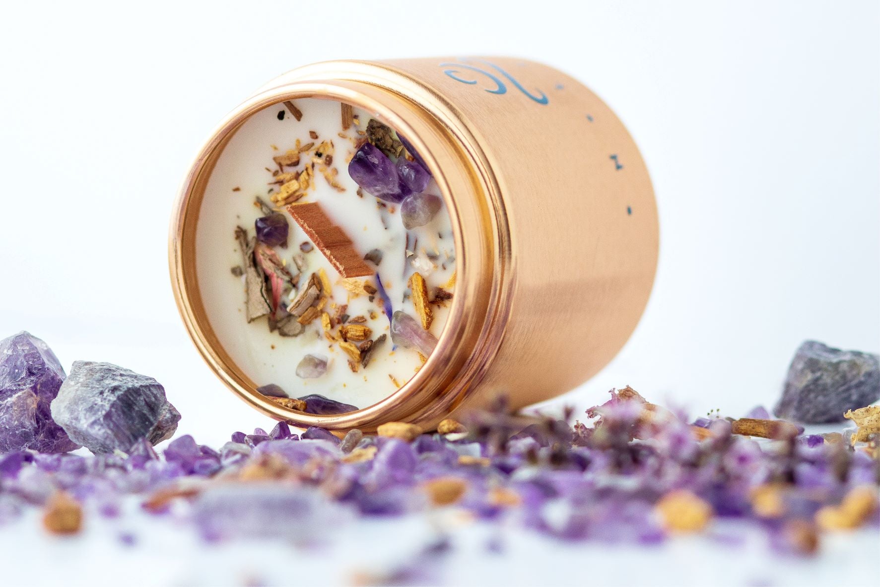 Layered to perfection. A blend of earthy references that melt into layers of woody and musky notes. The base of Patchouli and Vanilla anchors this fragrance, allowing the mid notes to bloom into a subtle floral, earthy scent infused with the healing properties of amethyst.